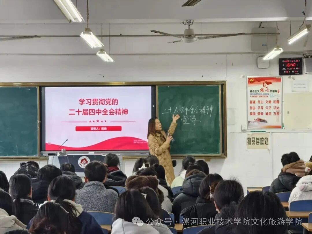 现场学习氛围浓厚,交流互动积极。学生们纷纷表示,要将全会精神融入日常学习与实践,夯实专业基础,锤炼技能本领,努力成长为有理想、有本领、有担当的文旅人才,为社会主义文化繁荣和旅游强国建设贡献青春力量。