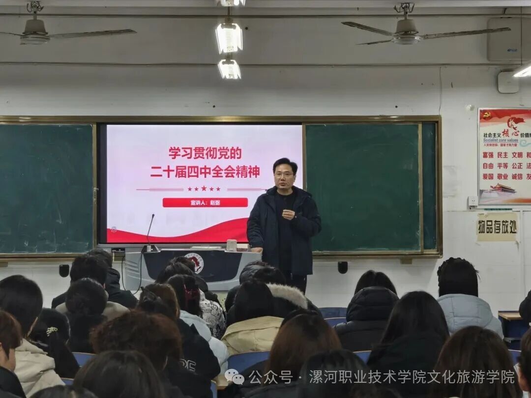 近日,学校党的二十届四中全会精神理论宣讲团第五组深入文化旅游学院,面向全院学生开展专题宣讲。宣讲紧密围绕全会关于“繁荣发展社会主义文化”“推进文旅深度融合”等重要部署,立足文旅产业发展趋势与学生成长需求,引导学生深刻把握新时代文化使命与青年责任。